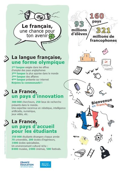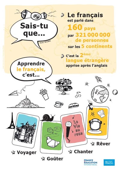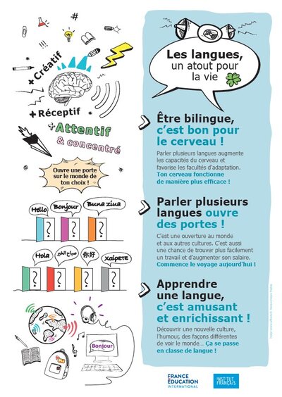 Diffusée en 2022 par l’Institut français et relayée par l’Institut français de Grèce, cette série d’affiches vise à promouvoir l’apprentissage plurilingue et le FLE auprès de différents publics. Le matériel est prêt, structuré, et de qualité. Encore faut-il lui donner les moyens d’être compris.