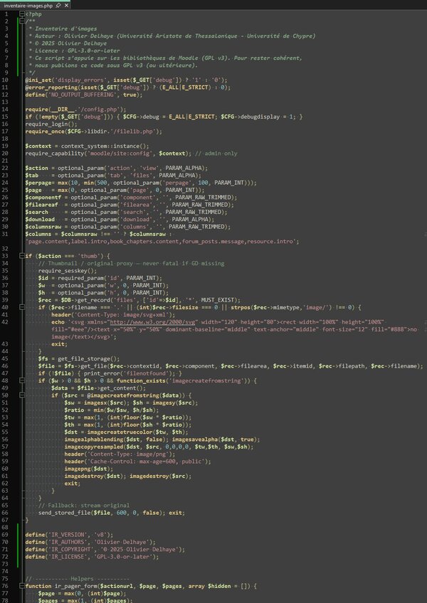 – Déposer un script inventaire-images.php à côté de config.php (dans le dossier du code Moodle).