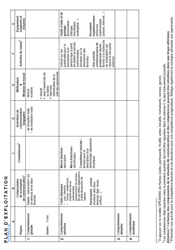 Comment ? Le public ? Oui, je crois aussi : un public pour le moins averti ! D’autant plus averti que si, comme le suggère ce tableau (qui pourrait à mon avis être vendu à prix d’or chez Christie’s), les apprenants sont invités à collecter des matériels supplémentaires (annonces matrimoniales !) sur la Toile, l’ambiance au cours sera chaude ! À organiser juste après une conférence sur les dangers de l’Internet, histoire de rassurer les parents !
